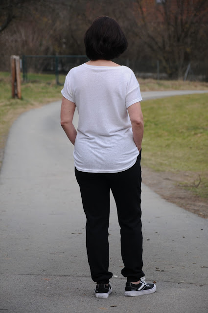 Bei Atlanta handelt es sich um eine gemütliche Freizeithose, der man mit einem (optional) abgesteppten Einsatz auf dem Knie einen richtigen Eycatcher verpassen kann. Ich habe hierfür einen etwas schwereren, schwarzen French-Terry verwendet und auf die Unterteilung verzichtet, da ich ein ganz schlichtes Basicteil haben wollte. Bei der Ösengestaltung bin ich allerdings ein wenig dem "Gruppenzwang" erlegen und habe zum ersten Mal Paspelösen probiert. Ich finde, die passen einfach perfekt zur Atlanta. Von liebedinge gibt es übrigens ein ganz tolles Tutorial dazu.